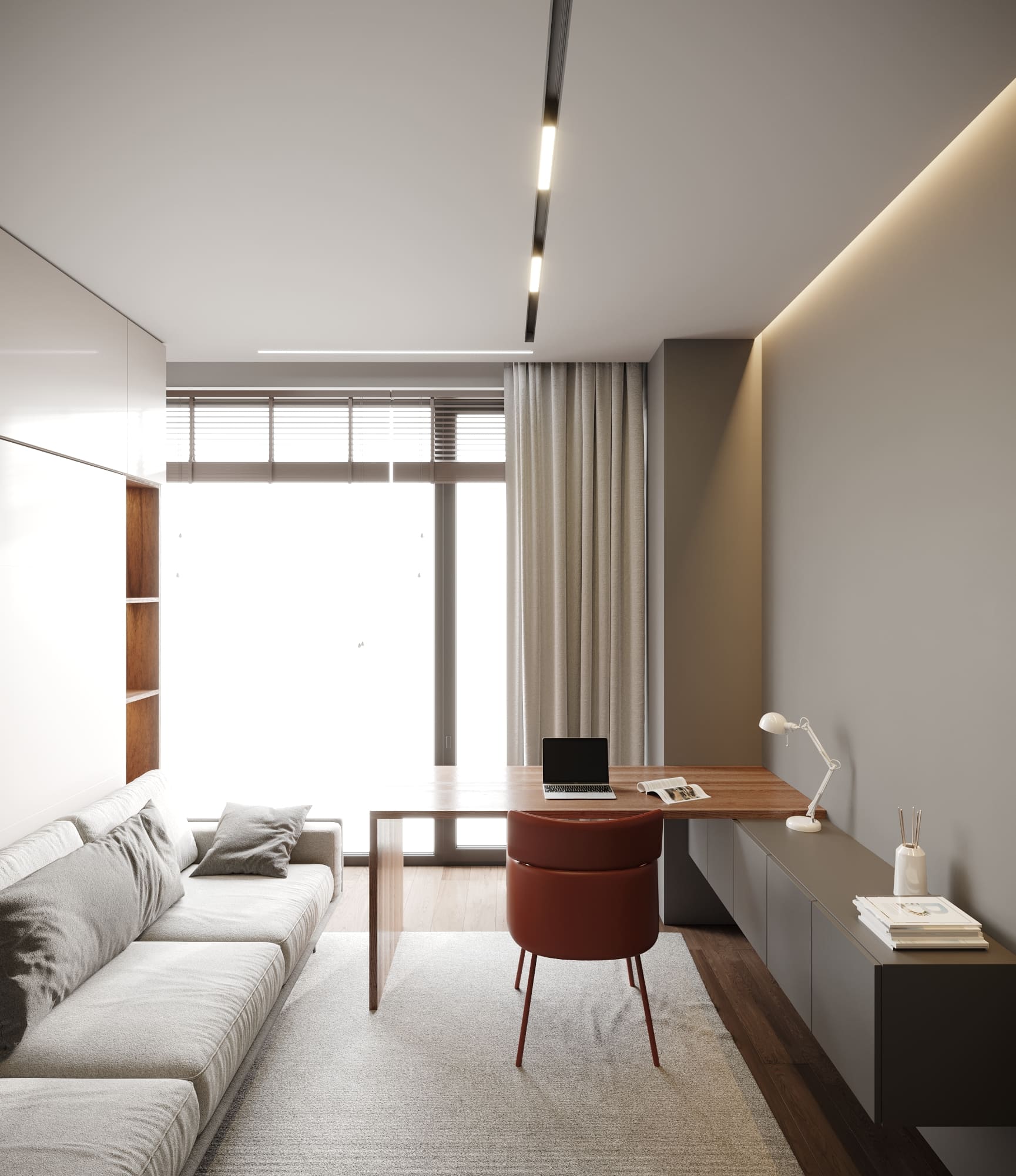 Перед вами наиболее яркий пример минимализма во всей его красоте –– смарт-система кабинета-гостевой.