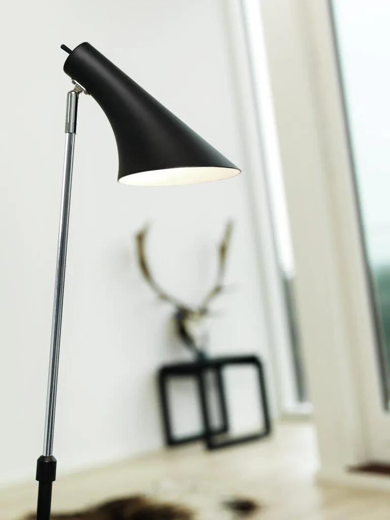 Спальню дополняют прикроватная тумба, столики интересных форм и лаунж-кресло.