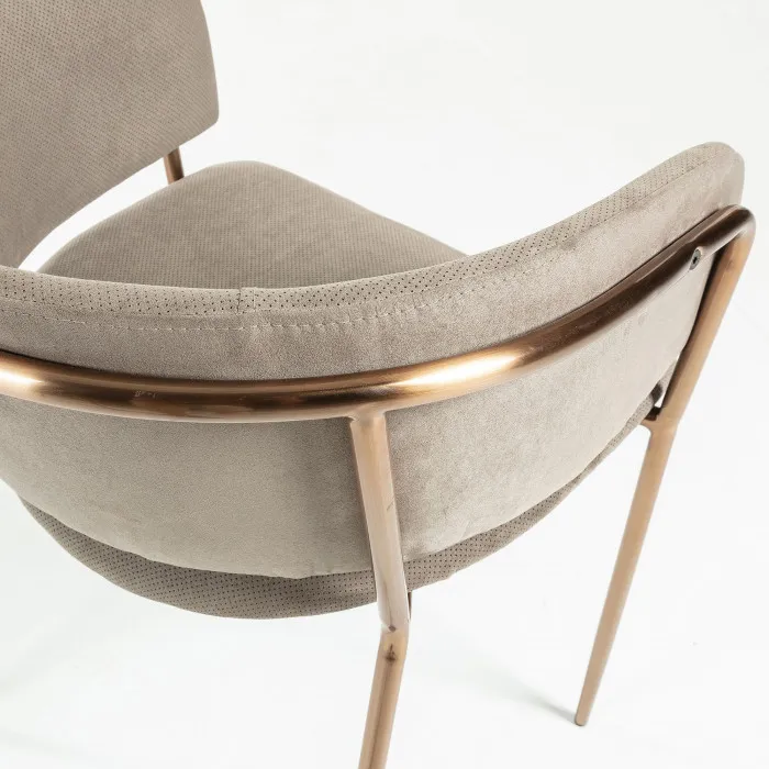 Кухня Modern — це комбінація сірого та пастельно-рожевого відтінків. Глянцевий фартух перегукується з глянцевою підлогою під мармур. На ручках фасадів, ніжках стільців і декоративних деталях фурнітура під золото.