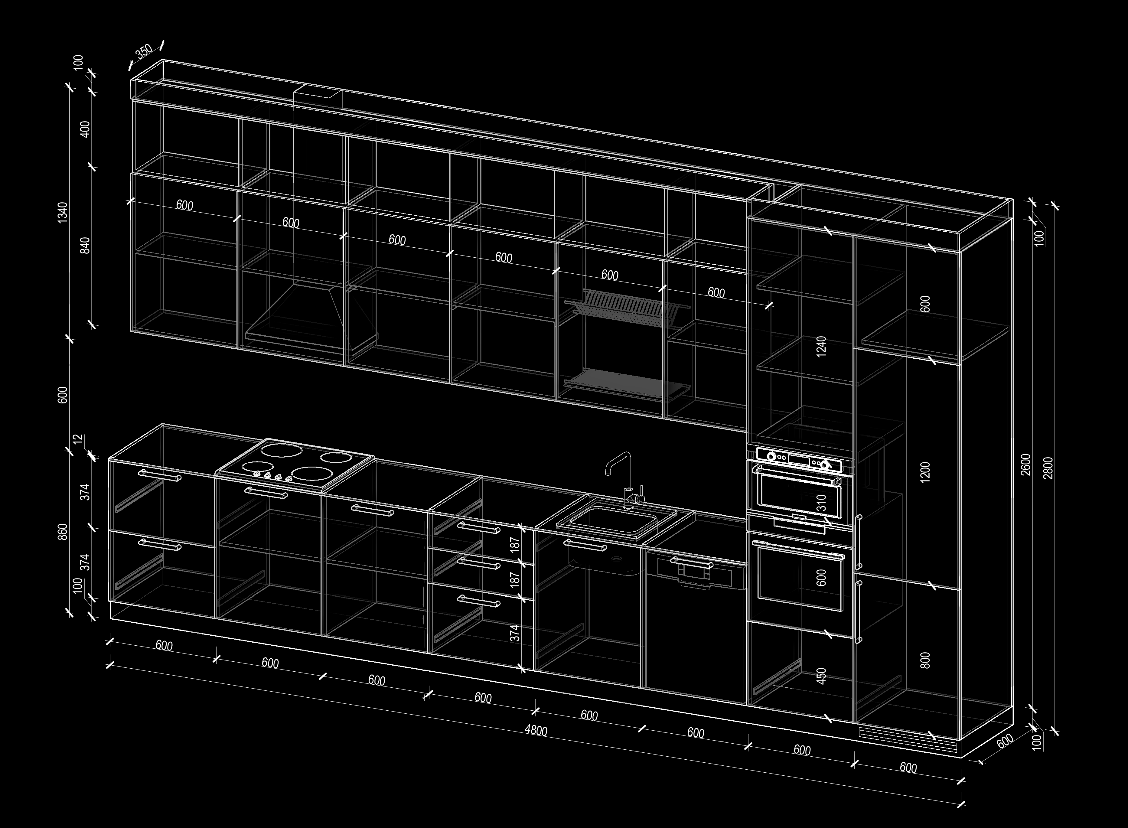Кухню виконано з максимально продуманою і перевіреною ергономікою, тому в ній передбачено зручний доступ до всіх поверхонь і шухляд. Також є місце для вбудованої техніки.